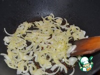 Обжарить на нем лук до прозрачности, добавив щепотку сахара. |