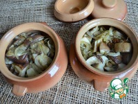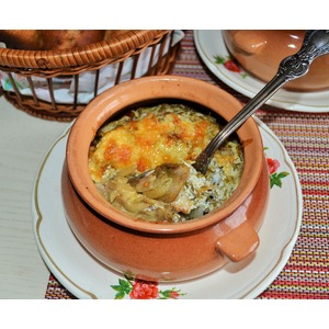 Разложить грибы с луком по порционным горшочкам или в одну жаропрочную емкость. |