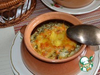 Открыть горшочки, добавить по 1 ст. л. тертого сыра. Увеличить температуру в духовке до 200 градусов и запечь сырную шапочку до красивого румянца, 5 - 7 минут. |