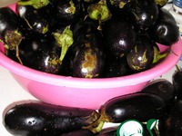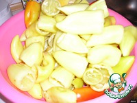 В стерилизованные банки укладываем слой баклажан - сантиметра 2, слой перчика - сантиметр - пол-сантиметра, немного чесночка, зелени, и опять синие, так до верху. Заканчивала я синими.
