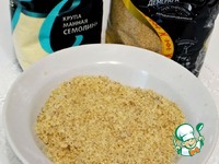 Орехи перемолоть, смешать с семолиной и сахаром "Демерара" фирмы "Мистраль". |
