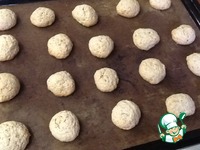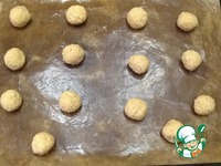 Из этого количества теста надо слепить 60 шариков. Я делю пополам, потом еще пополам и так далее. Шарики размером между фундуком и грецким орехом где-то. |