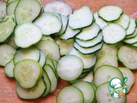 Огурцы помыть и нарезать тонкими кружочками. Я использовала для этого специальную тёрку. |