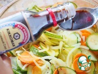 Затем полить натуральным соевым соусом Kikkoman и снова хорошо перемешать. |