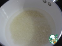 Засыпем рис в кастрюльку и зальем водой в пропорции 1:2, поставим варить на 10 мин, т. к. рис Жасмин готовится быстро, а нам нужен не совсем готовый рис) |