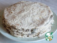Собираем торт. Каждый корж смазать грибным кремом... |