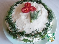 Описание: Предлагаю вам вариант вкусного закусочного торта из куриного филе. Готовится такой торт довольно быстро и из доступных продуктов. И еще- в этом рецепте нет ни капли муки. Рецепт нашла на просторах инета.