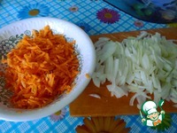 Морковь и лук почистить, помыть. Лук нарезать кубиками, морковь натереть на крупной терке. Стебель сельдерея раздавить плоской стороной ножа и нарезать на части 3-4 см. |
