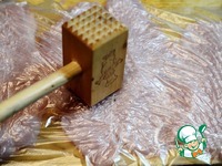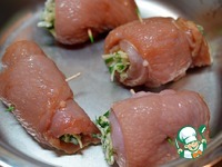 Скручиваем рулетик, закрепляем зубочисткой. |