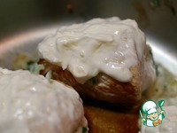 Сырный соус и зелень отлично оттеняют его и придают сочность.