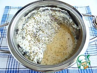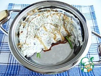 Рыбу перекладываю в сотейник, поливаю смесью хрена и сливок, посыпаю сушеным розмарином, поливаю соевым соусом. |