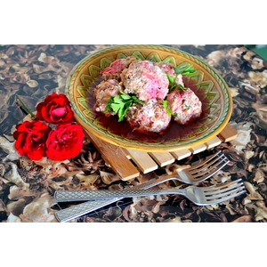 Кладем тефтели в кастрюлю, заливаем их стаканом горячей воды (не кипятком) и закрываем крышкой.