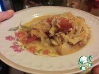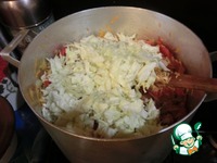 Нарезаем помидоры дольками и добавляем к луку с морковкой, все тушим еще 5 минут. |