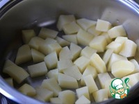 В кастрюле Zepter я приготовила картофель для салата: положила нарезанный крупными кубиками картофель и добавила к нему 2 ст. л. воды. |