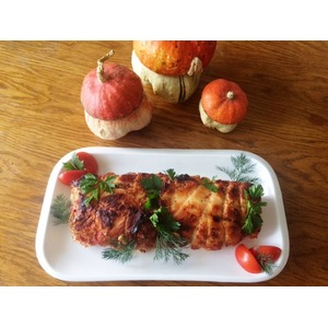 Первым делом нужно подготовить куриное филе - промыть под холодной водой, срезать если есть ненужные пленочки, вырезать косточки. Сделать не до конца в филе надрез ножом и разделить на половину. Немного отбить, посолить, поперчить, добавить ложку зерновой горчицы и смазать оливковым маслом. Сложить одно филе на другое в емкость, накрыть и отправить в холодильник мариноваться, к примеру на ночь. Или можете замариновать в майонезе с кетчупом, кому как больше нравится. Я предпочитаю оливковое масло.