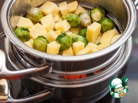 В пароварку складываем картофель и капусту, ставим вторым ярусом над мясом, закрываем конструкцию крышкой и слегка уменьшаем огонь. Теперь мясо будет готовиться на пару без воды и масла, отдавая тепло овощам, причем вкусы и запахи смешиваться не будут, овощи не будут пахнуть мясом, а у мяса не будет запаха капусты. Удивительно, правда? И хотя в этом блюде смешение запахов не принципиально, поскольку все в итоге будет подаваться вместе, но такая особенность посуды Zepter позволяет готовить на разных ярусах, например, рыбу и десерт! |