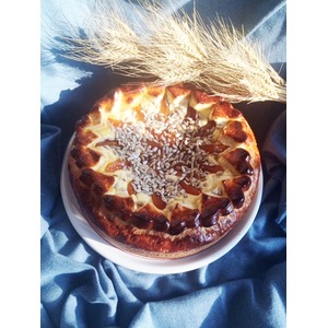 Распределяем творожную массу по центру, раскладываем персики/абрикосы из варенья и покрываем самим вареньем. Или если это джем просто распределяем по всему творожному слою. |