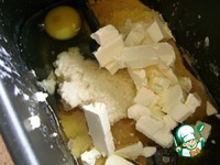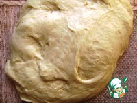Тесто я делаю в хлебопечке. Прошу сразу обратить внимание на этот пункт, потому что руками такое тесто нужно вымешивать опарным способом и тщательно выбивать, добавляя масло частями. А в хлебопечке все делается само и тесто нежной консистенции, липкое, получается без хлопот. Загрузить продукты в ведерко хлебопечки согласно инструкции. Я сначала выкладываю все жидкие ингредиенты, затем добавляю дважды просеянную муку-сеять нужно свысока, хорошо насыщая муку воздухом. Мелкие овсяные хлопья я залила кипятком и дала набухнуть, после чего добавила в пирог без лишней жидкости. В последнюю очередь кладу дрожжи. Ставлю замес и подъем на 2,5 часа. Теста получается много –на два пирога –или на пирог в форме размером 27 х 18 и еще на лист булочек. Тесто вкусное, плотноватое и очень ароматное. |