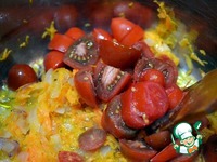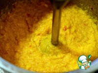 Добавить морковь и тыкву. Обжарить. Затем накрыть крышкой и тушить 30 минут. |