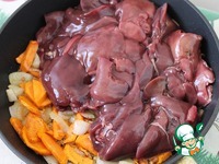 Добавить печень. Обжаривать все вместе 10 минут. |