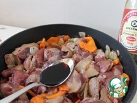 Затем добавить соевый соус, перемешать и готовить до готовности печени. Остудить до теплого состояния. |