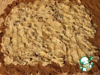 На пищевую пленку выложить паштет, разровнять его, формируя прямоугольник. Сверху выложить начинку из сыра и грибов. |