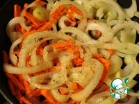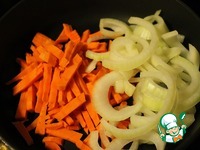 Морковь нарезать крупной соломкой, лук полукольцами. |