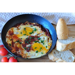 Описание: Шакшука - это яичница в остром томатном соусе. Это блюдо является традиционным во многих странах Ближнего Востока. В его приготовлении нет ничего сложного и, если Вы любите горячее, острое, пряное, оно будет одним из Ваших любимых.
