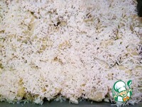 Трем на мелкой терке брынзу и покрываем ею картофель. |