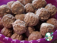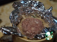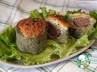 В формочки из силикона или просто из фольги выложить до половины картофельное тесто, сделать в центре углубление, в него положить грибы, затем фрикадельку. |