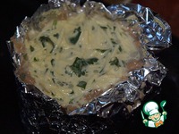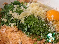 Приготовить соус. Натереть на мелкой терке сыр, смешать его со сливками, слегка взбитым куриным яйцом, мелко порезанной кинзой. |