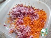 Морковь и редис натереть на мелкой тёрке |