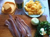 Закладываем ингредиенты: слой лука, следом филе минтая |