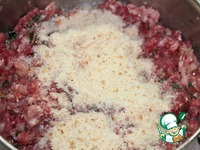 Добавить хлебные крошки ( черствый хлеб порубить в блендере или натереть на терке), снова вымешать мясное "тесто". |