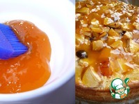 Приостывший пирог освободить от формы. Смазать пирог джемом из абрикос (как бы промакивая щеточкой). Можно украсить миндальными лепестками. Пирог должен настояться, не накрывать. |