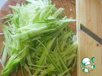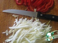 Болгарский перец нарезать соломкой, капусту нашинковать. |