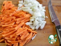 Морковь и лук порезать и обжарить на растительном масле, до полуготовности. Добавить любимые специи. Я предпочитаю просто черный молотый перец. |