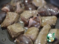Печень обжарить на растительном масле с добавлением 2 столовых ложек соевого соуса |
