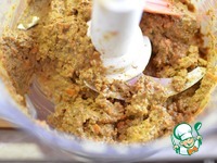 Горячую печень и морковно-луковую поджарку промолоть в блендере до однородной массы. |