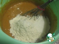 Всыпаем муку, щепотку соли и разрыхлитель теста, хорошо перемешиваем до однородного состояния. |