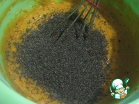 Добавляем мак, перемешиваем. Тесто по консистенции получается гуще, чем на оладьи, не стекает с ложки. |