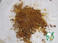 Карамель измельчаем, но не сильно мелко, чтобы были небольшие кусочки. (я это делала скалкой на доске) |
