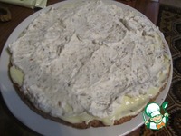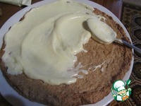 Начинаем собирать торт. Корж покрываем заварным кремом. |