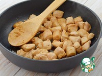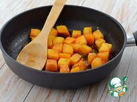 Готовую тыкву убрать на тарелку и в этой же сковороде обжарить курицу, полив соевым соусом и добавив меда. Жарить, помешивая, минут 7 до готовности. |