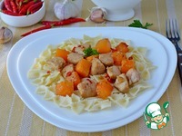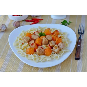 Подавать бабочки, сверху положив мясо и тыкву. Мне очень это блюдо понравилось. Рецепт мною взят из соцсетей. |