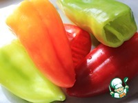 Перцы вымыть, отрезать верхушки, очистить от семян и перегородок. |