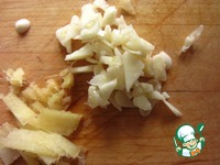 Режем имбирь и чеснок |