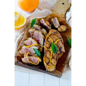 Готовые утиные грудки порезать, украсить цедрой апельсина и подавать к столу. Приятного аппетита!!! |