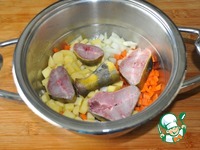 Описание: Опеканная уха - старинный русский рецепт. "Опеканная" от слова "опечь" - запечь. Подразумевалось запекание в русской печи или духовке. Мы же будем готовить эту уху в посуде Zepter, которая имеет ко всем своим прочим достоинствам эффект русской печи.
