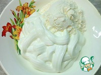 Пока картофель варится, сметану тщательно смешать с мукой. |